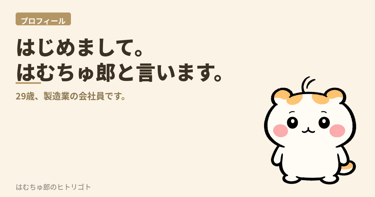 自己紹介 はじめまして。はむちゅ郎と言います。 29歳、地方で製造業の会社員をやっている、ごく普通の男です。普通というか、普通以下かもしれない。 高専を出て、そのまま今の会社に入って、気づいたらもう何年も経っていた。 趣味は小説を書くこと。ス...