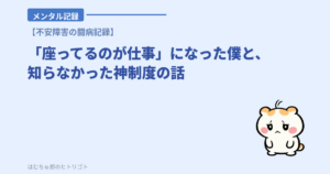 2本目は、職場で「座ってるのが仕事」になった日の話。仕事を振られない。時計が進まない。でも同期に自立支援医療のことや、タスクを細かく分解する工夫を教えてもらって、ちょっとだけ救われた、という日のこと。