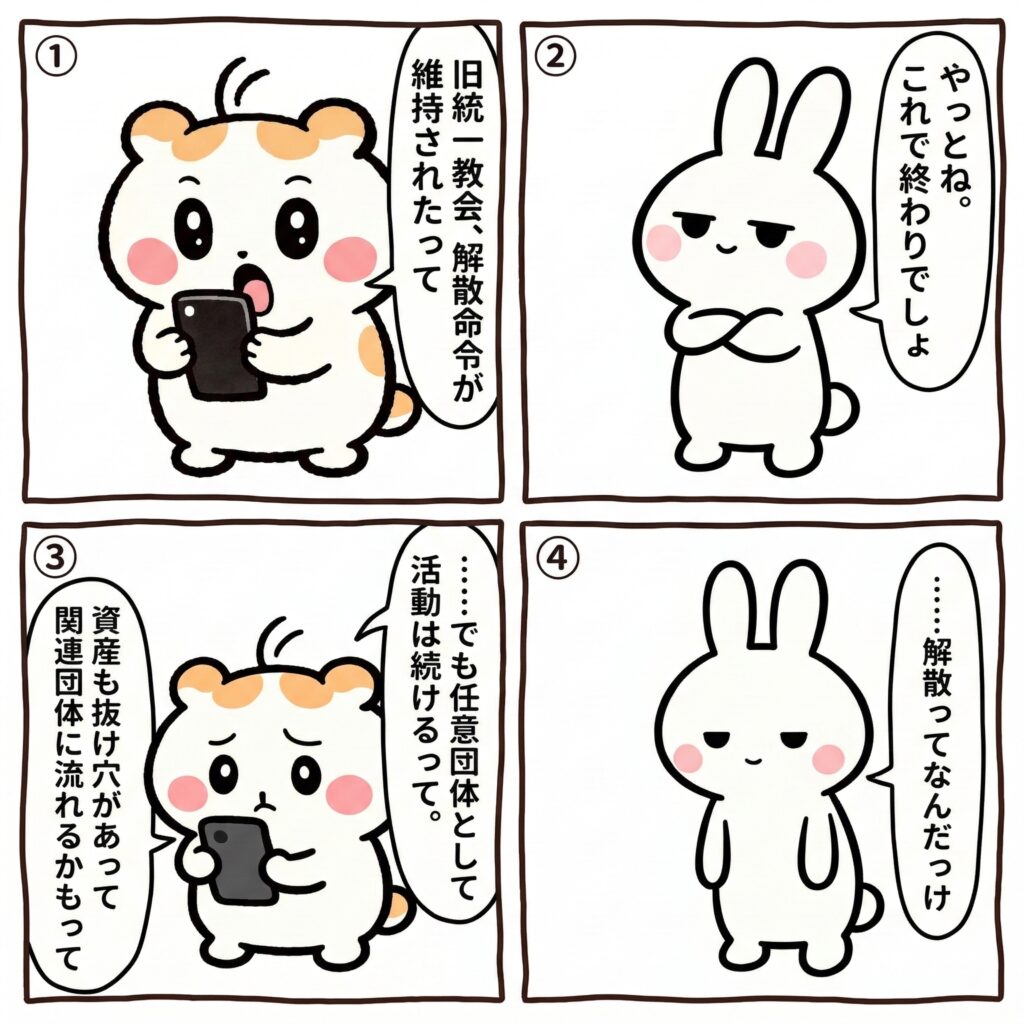 2025年3月の東京地裁に続き、高裁も同じ判断を下した形で、決定はその日のうちに効力が生じた。裁判所が選んだ担当者のもとで、教団の財産を整理する手続きがすでに始まっている。