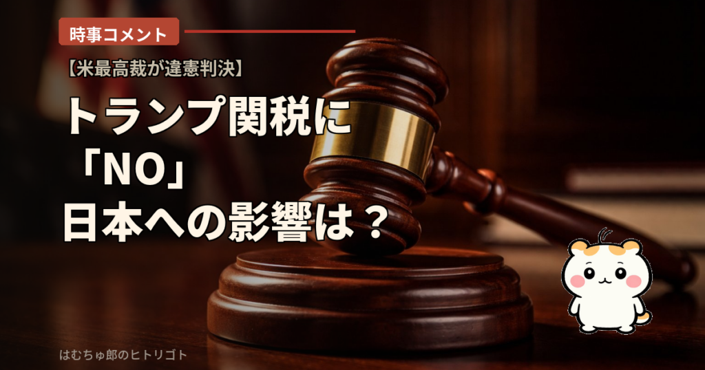 ニュースの概要 2月20日、アメリカの連邦最高裁判所が大きな判決を出した。 トランプ大統領が各国に課してきた「相互関税」について、大統領にはそもそも関税を課す権限がないとして、違憲(違法)と判断したのだ。判決は6対3。トランプ氏自身が指名した保... -