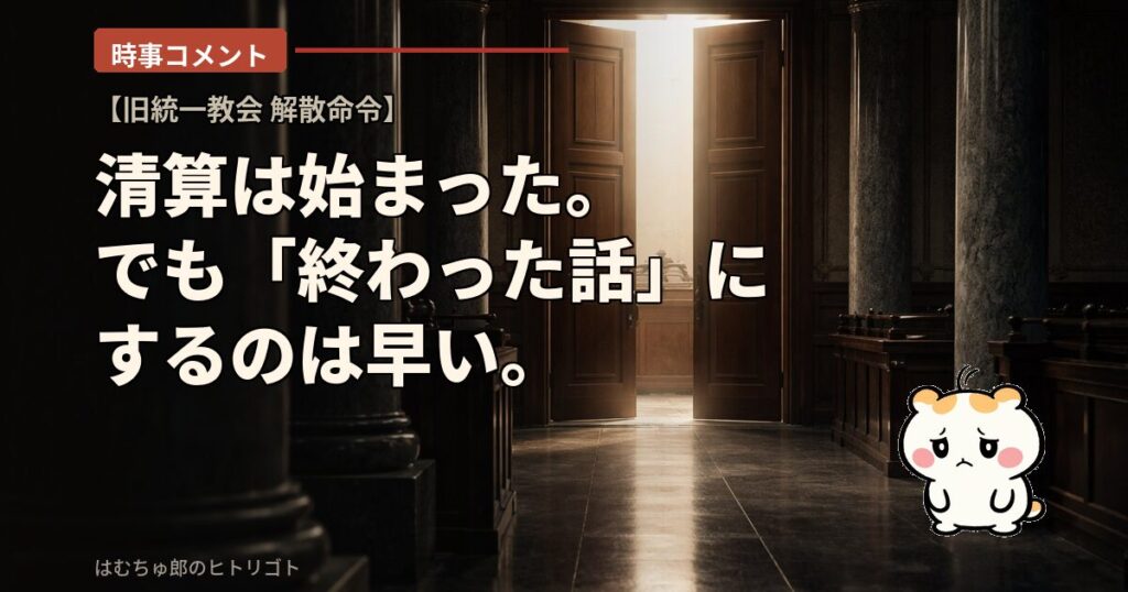 ニュースの概要 3月4日、東京高裁が旧統一教会(世界平和統一家庭連合)の解散命令を維持し、教団側の訴えを退けた。 2025年3月の東京地裁に続き、高裁も同じ判断を下した形で、決定はその日のうちに効力が生じた。裁判所が選んだ担当者のもとで、教団の財...